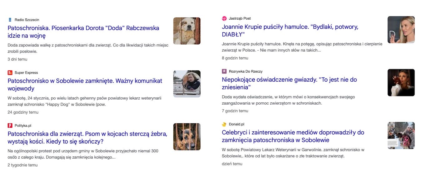Patoschroniska w Polsce są bolesnym przykładem tego jak działa dziś świat. Możemy uratować te zwierzęta bez wychodzenia z domu i bez sięgania do portfela. Wystarczy, żebyśmy interesowali się wiadomościami na ten temat. Nasze komentarze, kliknięcia w artykuły i wyświetlenia wideo dadzą sygnał mediom, żeby się nim zajęły. Bez naszej atencji ta afera przycichnie i sytuacja zwierząt w polskich schroniskach się nie poprawi. A media znajdą jakiś nowy bulwersujący temat z dalekiego kraju, którym nas zainteresują - i ten cykl się powtórzy.