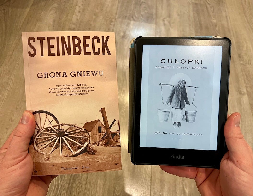 Dzierżawili ziemię, na której pracowali i utrzymywali swoją rodzinę. Gdy przyszła susza, głód i kryzys to zostali zmuszeni, aby się z niej wynieść i wyruszyć całymi rodzinami w desperacką podróż do odległej o 2000 km (!) Kalifornii. Po drodze byli okradani, oszukiwani i cierpieli skrajną biedę. Ta książka ma jedno z najbardziej wstrząsających zakończeń jakie w życiu czytałem. Jej lektura mocno zmieniła moje spojrzenie na prawo własności i to, w jaki sposób dbać o swoje finanse.